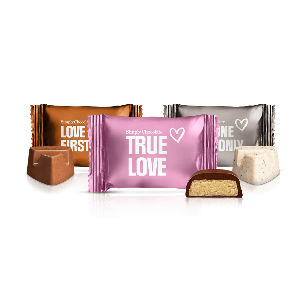 Boks med 75 stk. bites Fall in love again Her har du den perfekte box med chokolader, når du skal fejre kærligheden – et bryllup, en stor fødselsdag, en studenterfest, et jubilæum, et event, et baby-shower eller et af livets andre store begivenheder. De æ
